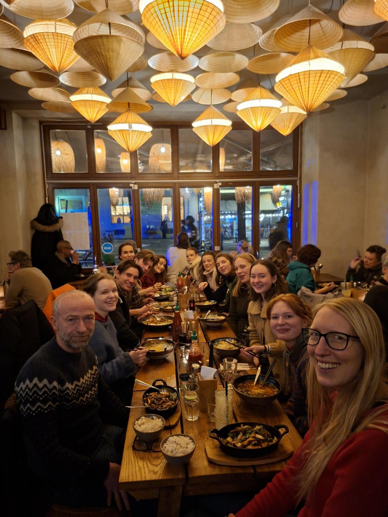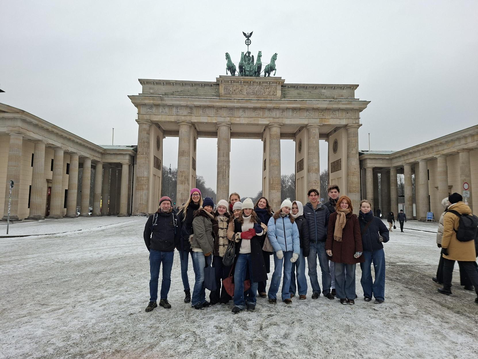 I tre dager var Tysk III på Max Delbrück Gymnasium, partnerskolen vår gjennom Erasmus pluss, hvor vi var aktivt med i en workshop om demokrati i Norge og Tyskland. Det ble presentasjoner av elevene, engasjerte diskusjoner og mange «aha»-øyeblikk. På skolens "Åpen dag" fikk vi en guidet omvisning, og de tyske elevene serverte typisk tysk mat som de hadde laget selv. Vi deltok også i undervisningen og ble kjent med forskjellene i lærer- og elevrollen. Kveldene brukte vi på biljard, monopol og intens tysksnakk. Det gjorde underverker for språket, og enda mer for stemningen. :) Vi besøkte Futurium-museet, gestapo-museet "Topographie des Terrors" og Bernauer Straße og Stasi-fengselet Hohenschönhausen, Humboldt-universitetet og Riksdagsbygningen. Midt i oppholdet ble det tacofredag i Sjømannskirken sammen med norske utvekslingselever i Berlin. Alt i alt: en lærerik, spennende, morsom og sosial tur som ga oss både nye perspektiver og minner for livet. Tusen takk til tysk III gjengen for at dere var så motiverte, positive, interesserte og åpne for nye opplevelser på turen! Vi fikk motbevist tyskernes stereotyper om de tause nordmennene.